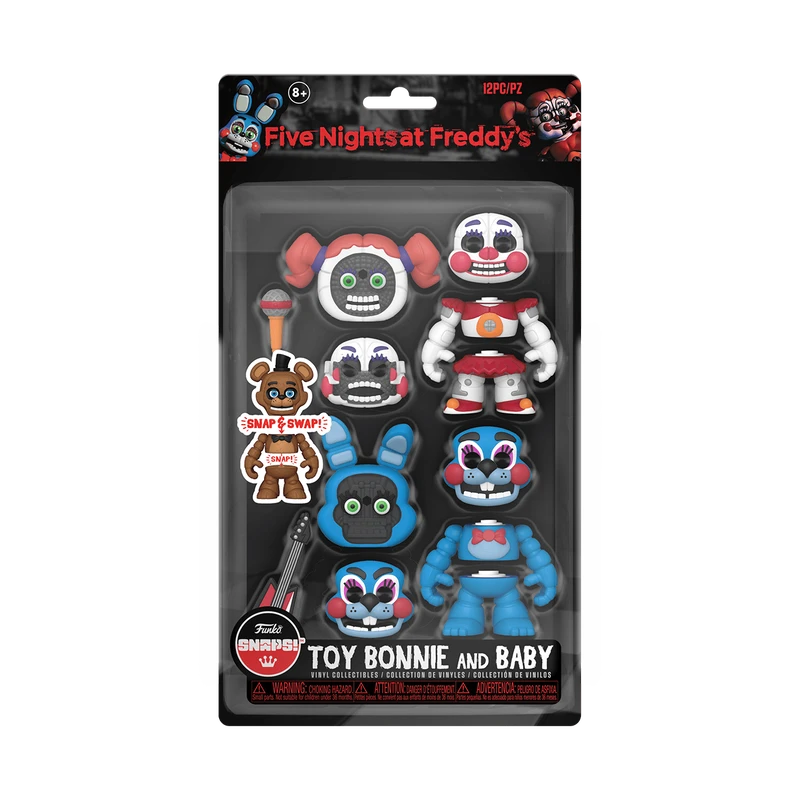 Lock down SNAPS! Bonnie and SNAPS! Baby to capture them for your Five Nights at Freddy’s set. Collect and mix them all! Vinyl collectibles are approximately 3.5-inches tall.