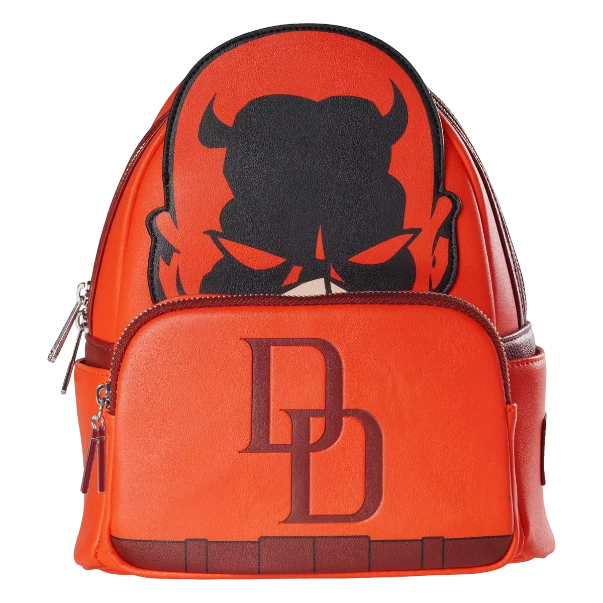 Taking on his classic red suit appearance, this backpack depicts The Man Without Fear as custom-shaped applique looming over the front pocket, which displays the superhero’s logo in debossed detail. Accompanying the pocket are his batons as a zipper charm and on the back of the bag, a heroic graphic is shown.