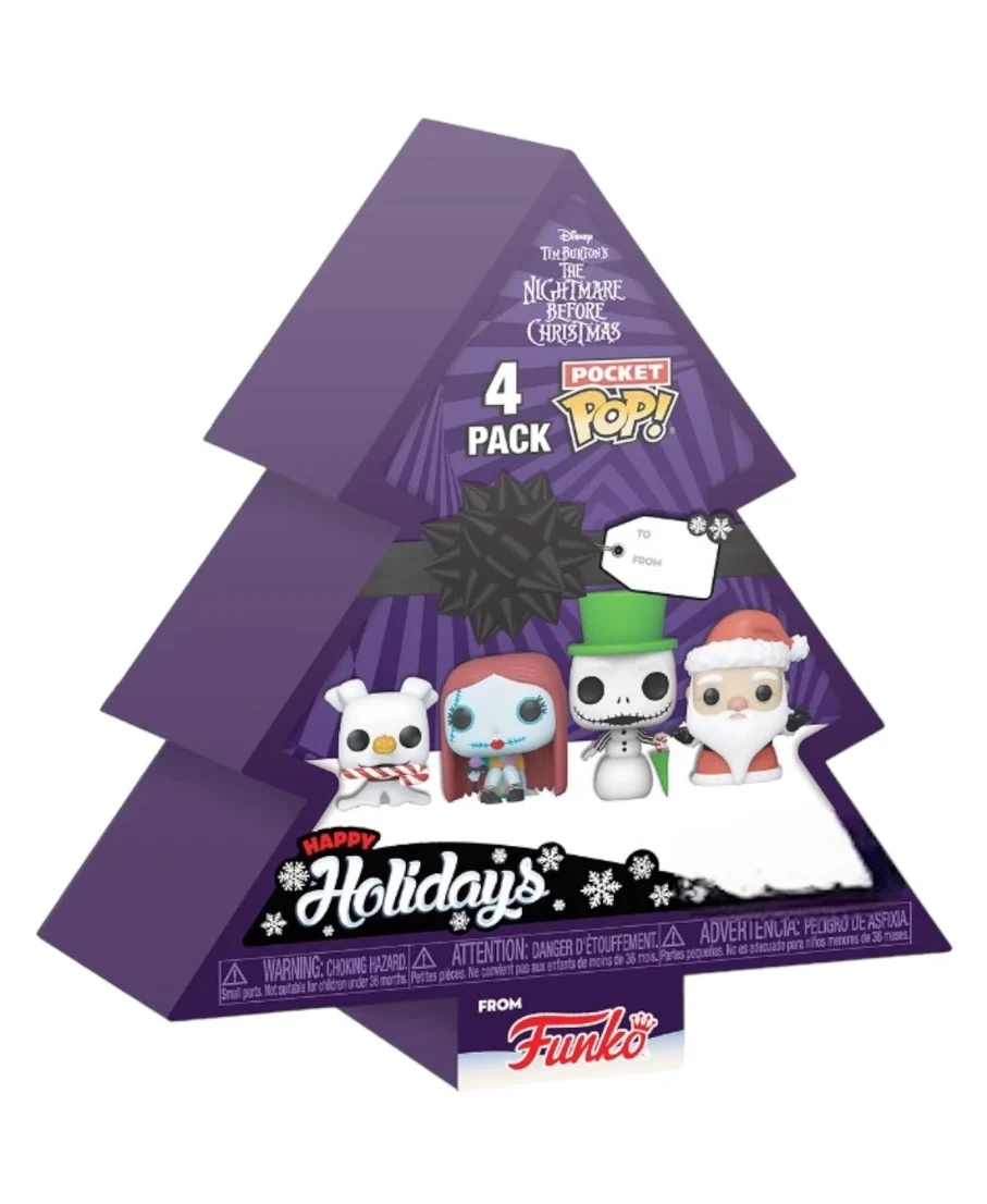 Featuring Snowman Jack Skellington, Sally, Zero, and Santa Claus, this Pocket Pop! Vinyl 4-Pack is just what you need for some festive fun.