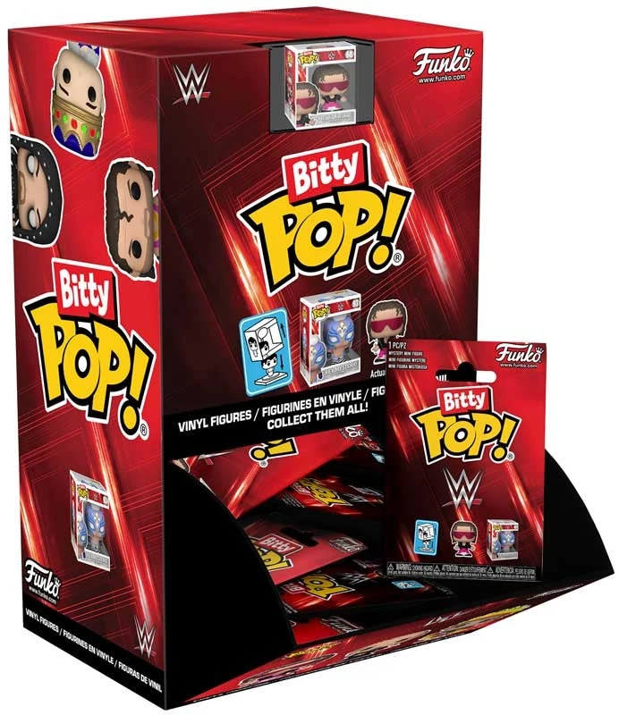 Your favourite WWE Pops! have been shrunk into Bitty Pops! Expand your collection with this assortment of Bitty Pop! figures featuring some of the most legendary names in wrestling as miniaturized figures! Each Bitty Pop! comes in mystery packaging and includes one collectible figure. Who will you find? There’s Bitty Pop! Bret “Hit Man” Hart™, Bitty Pop! Shawn Michaels, Bitty Pop! “Mean” Gene Okerlund™, Bitty Pop! Dusty Rhodes, Bitty Pop! Jerry Lawler®, Bitty Pop! Ricky the Dragon Steamboat™, Bitty Pop! Razor Ramon™, Bitty Pop! Diesel™, Bitty Pop! Rey Mysterio®, Bitty Pop! Undertaker®, Bitty Pop! British Bulldog™, and Bitty Pop! Batista. Bitty Pops! are packaged in hard acrylic cases with detachable bottom lids. Detachable bottom lids double as acrylic bases, to which the Bitty Pop! figures are adhered. Vinyl figure is approximately 2.3 cm tall. One figure per single package purchase.